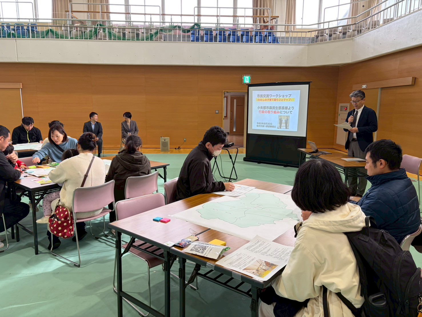 また、小矢部市の行政担当者様をお招きして、市民と交流ワークショップも行いました。小矢部市民が子育てで困っていることをマッピングし、行政と課題を共有することで、今後の政策に活かされていく予定です。