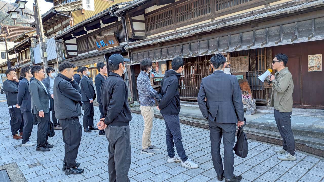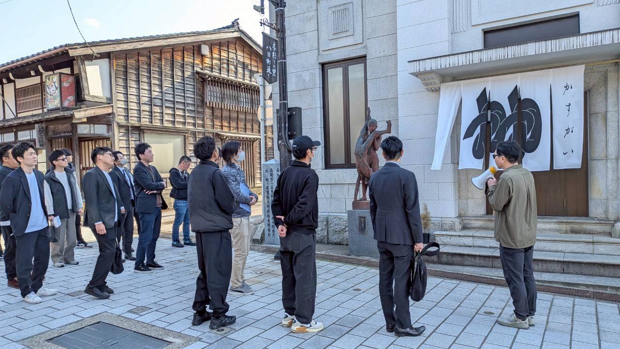 講演後には、実際に井波の街へと足を運び、井波八幡宮や瑞泉寺、八日町通りから中京銀座付近を巡りました。現地を歩きながらジソウラボによる取り組みについて直接ご説明いただくことで、講演内容と地域の実情が結びつき、より深い理解へと繋がりました。