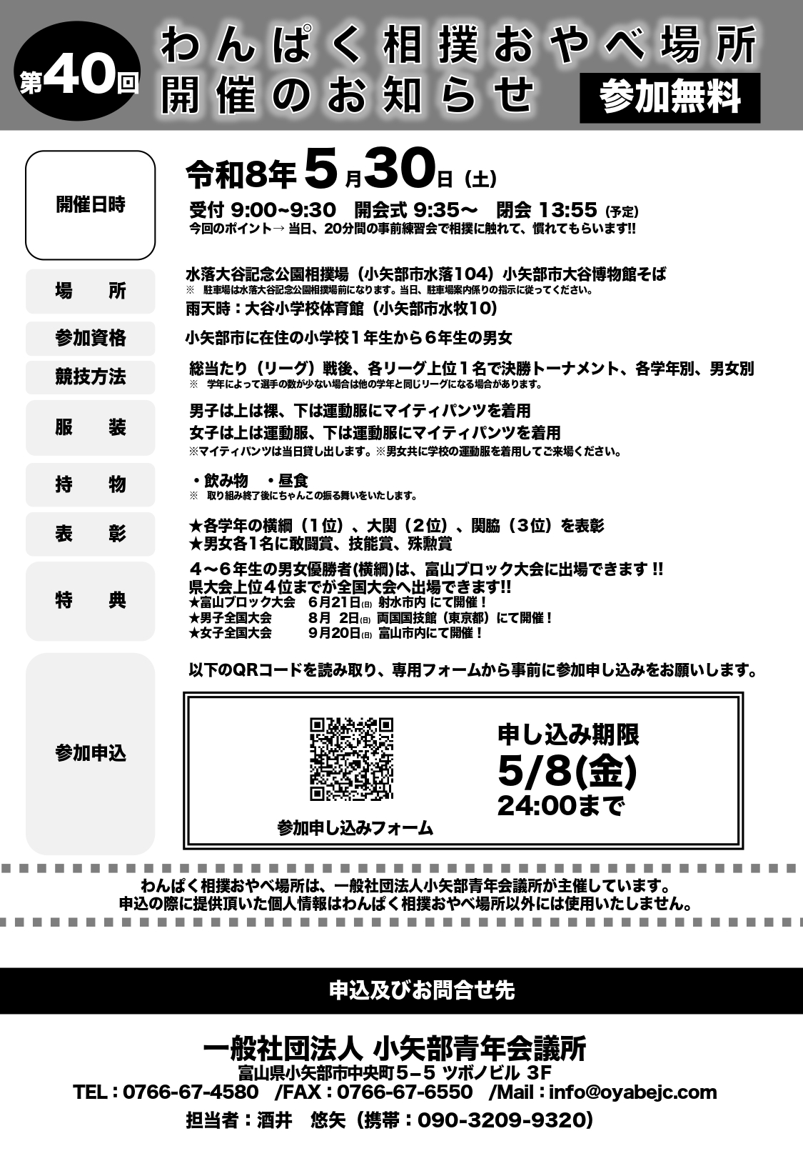 第40回 わんぱく相撲おやべ場所 開催!参加者募集!