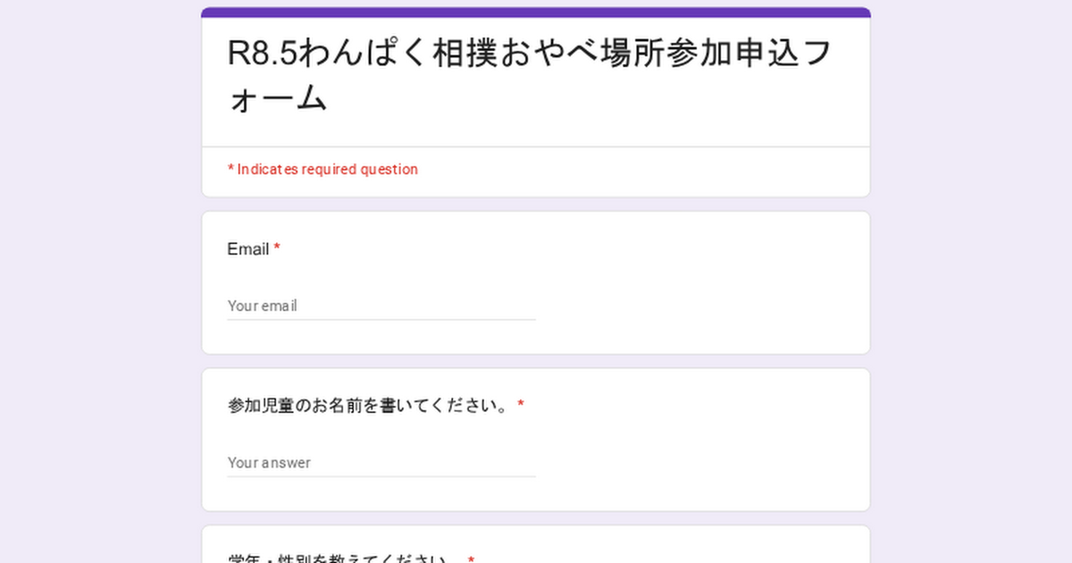 R8.5わんぱく相撲おやべ場所参加申込フォーム